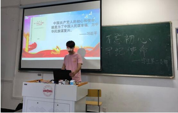 9月20日下午,村花论坛 学生第党二支部在A楼103开展“不忘初心、牢记使命”主题教育党日活动。学生支部书记陆佳主持会议,学生第二支部全体党员参加会议。