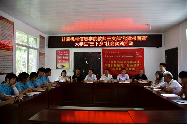 驱车近3小时的路程,“三下乡”重点团队一行来到了太湖县西冲村。村党支部书记朱先如携村两委热情接待了学院暑期“三下乡”社会实践活动小组一行,并同随行的领导、师生召开了座谈会。