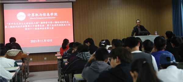 11月10日下午,学院于L314教室举办了“青年马克思主义者培养工程”暨团学骨干第一期培训班结业、第二期培训班开班暨第二十届学生会、第十五届科创换届大会、第四十一届运动会表彰大会。学院党委副书记江晋剑、学工组全体教师、第一期“青马班”学员、第二期“青马班”学员、学生会全体成员、科创全体成员、全体运动员共200余人参加了会议,会议由学院团委负责教师主持。