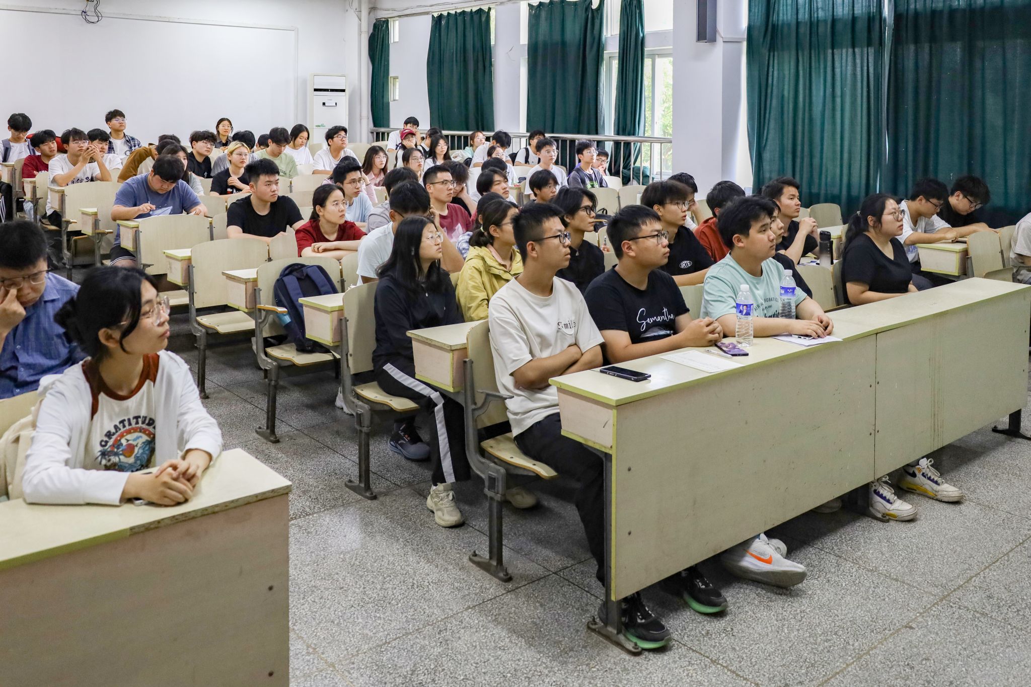 于A楼305教室举办励志成长报告会,此次报告会共邀请学院五名优秀学子分享经验,学院近120名学生来到报告会,向学长学姐“取经”。