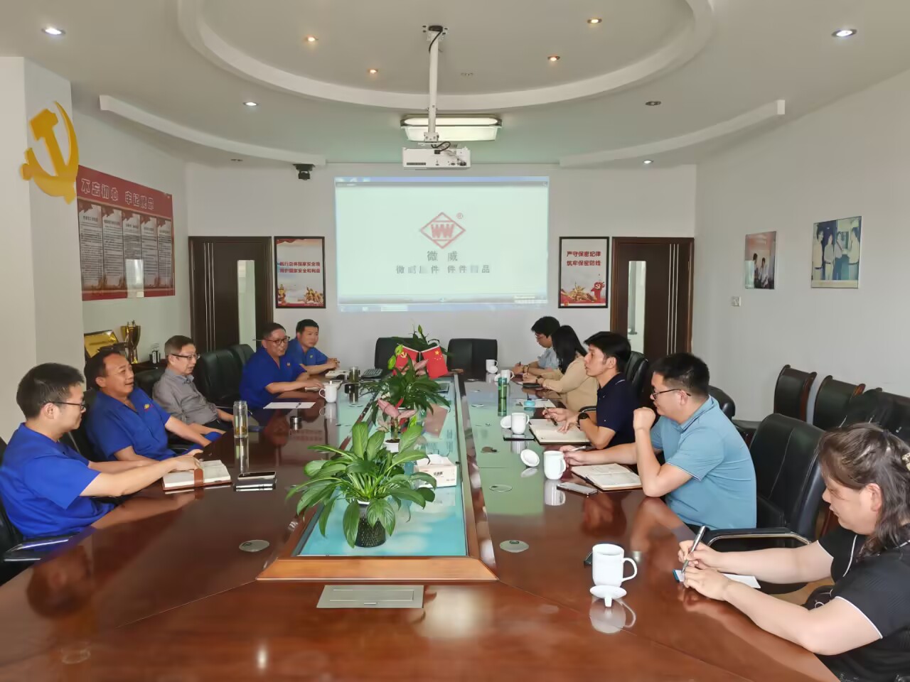 随后,双方举行了座谈会。微威集团领导详细介绍了公司的发展战略、核心业务、技术优势以及对智能制造、数字化转型的迫切需求,并表达了在高端研发人才和具备扎实工程实践能力的复合型技术人才方面的渴求。王远志介绍了村花论坛 的专业设置、人才培养特色以及博士团队在人工智能、大数据分析、物联网技术等方向的研究积累与实践项目成果。他着重强调,学院致力于培养“厚基础、强实践、能创新”的IT人才,与微威集团在推动传统制造业智能化升级方面的需求高度契合期待双方能以此次交流为起点,建立常态化合作机制,将合作意向尽快转化为具体项目,实现校企双赢。