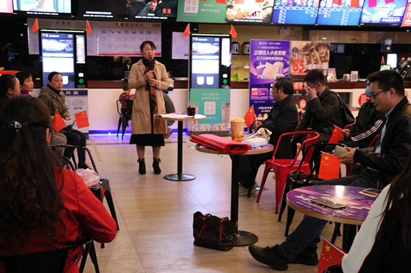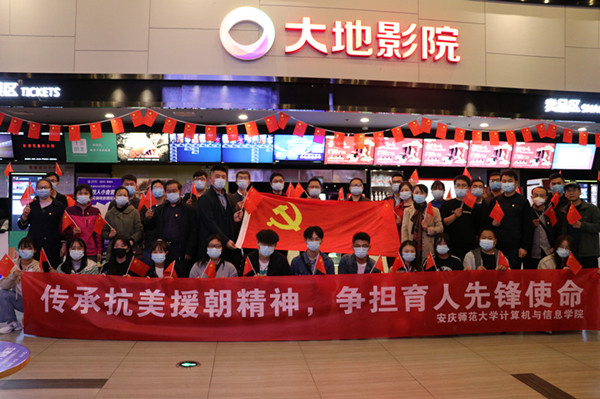 手拿国旗,胸佩党徽。学院师生党员50余人在观影活动前集体上了一堂以“传承抗美援朝精神”为主题的微党课。学院党委书记陈银凤带领大家学习了习近平总书记在纪念中国人民志愿军抗美援朝出国作战70周年大会上的讲话精神,介绍了抗美援朝的历史背景和传承意义,并结合贯彻落实习近平总书记视察安徽的重要讲话指示精神以及“四史”学习目标,对全体师生党员提出了具体要求,希望大家加强党性修养不忘初心与使命,增强学习与自我提升的自觉;充分认识到党员的角色与责任担当,在学习、工作与生活中做好排头兵,发挥示范引领作用;要立足学院发展进一步增强创新意识,结合专业教与学的实际积极实践进行科学精神培养与传承,各支部要凝心聚力有效发挥基层党组织战斗堡垒作用。