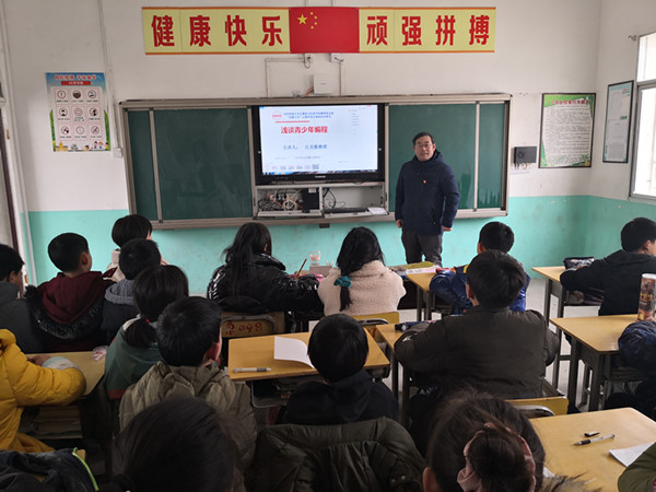 在马庙小学,学院三个教师党支部联合开展了“送教下乡”主题活动。活动中结对支部进行了座谈交流,支部联合捐书助学设立了爱心图书角,现场慰问了留守儿童,教授博士走进小学课堂,对学生们进行了网络安全教育、程序设计基础知识普及等。座谈会上,学院教师第三党支部书记江晋剑介绍了两支部结对一年来的工作进展及成效,朱河小学党支部书记朱俊峰对村花论坛 为学校教育发展提供的支持表示感谢,双方就后期的结对工作进行了深入交流。陈银凤一行参观了马庙小学图书室,并在现场设立了村花论坛 爱心图书角,持续开展了捐书助学活动,并为留守儿童送上了学习及体育活动用品。教师第一党支部书记江克勤教授和支委刘德阳博士给小学生上了两堂别开生面的课——《程序设计基础知识普及》、《网络安全知识教育》,现场孩子们踊跃发言,气氛热烈,接受了网络安全教育及计算机相关知识的普及,孩子们的学习兴趣得到有效激发。