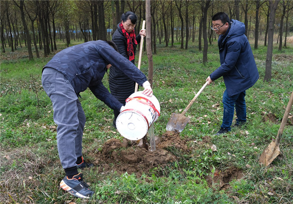 数字媒体技术专业老师储小玉不时用手机拍摄着活动现场,储小玉说:“作为一个入校不久的老师,这是我第一次参加植树活动,感觉很有意义,所以想要记录下来。”她认为通过这次活动,自己和其他老师的关系更加融洽,也懂得了不少植树的小技巧。