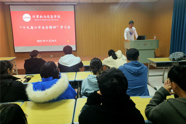 为引导广大学生骨干了解党的十九届六中全会内容,认识十九届六中全会的重大意义,增强学生骨干建功新时代及爱党爱国热情,11月24日晚,学院团委组织团学骨干于L楼314教室学习了十九届六中全会精神,学院学生会主席团、各部门负责人、各班班长,团支书共95人参加了此次学习,学生会主席团赵明康主持学习会。
