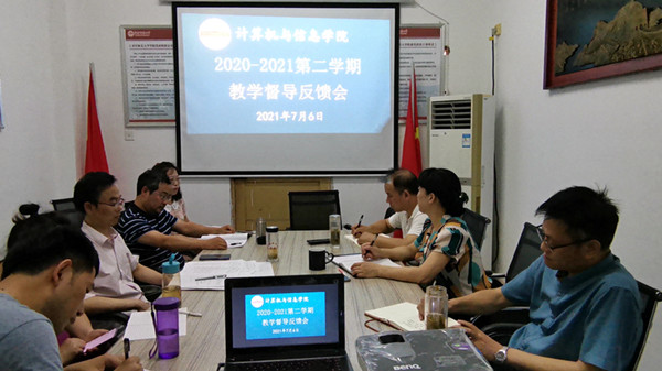 7月7日下午,我院在周转房304召开了2020-2021第二学期教学督导工作反馈会。院校两级教学督导组全体成员、学院党委书记陈银凤、院长王一宾、副书记江晋剑等参加了会议。会议由分管教学副院长刘奎主持。