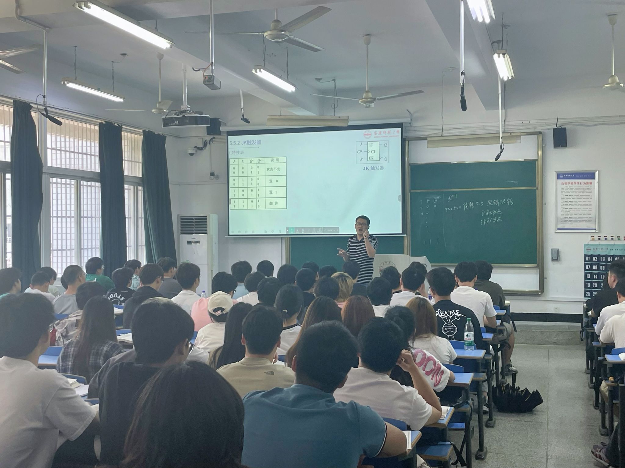 教学过程中,汪老师循循善诱,讲解深入浅出,能充分调动学生学习的积极性,课堂氛围好。教学设计有机地将课程思政融入到专业知识中,在讲解到不同类型触发器间的转换时,引导学生思考在生活中遇到不能直接解决问题的时候,需要具备转换思维,换种角度看待问题;只要方向正确以及具备足够的知识储备,目标终能实现。