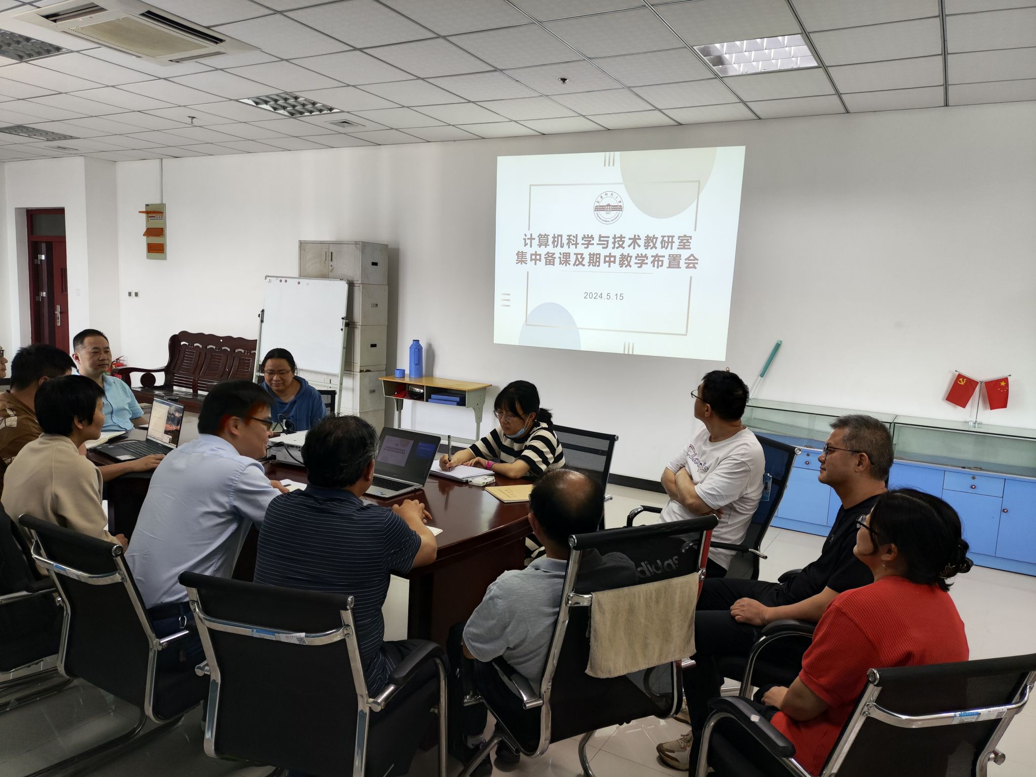5月15日下午,计算机科学与技术教研室在L311会议室开展集体备课及期中教学布置会议。会议由教研室副主任詹青主持,教研室各位教师参加了本次会议。首先,詹青就教学进度、期中考试、毕业答辩、专业实践等相关工作进行了说明和布置,强调了集体备课的重要性,指出这是教师分享教学经验、提高教学质量的有效途径。随后,教研室各位教师积极就课程建设与专业建设展开了深入讨论,将各自的教学经验进行了分享,对教研室的一流课程、一流教材、教研论文的培育建设进行了规划。