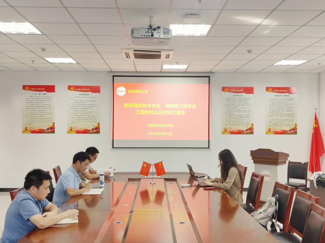 在L312会议室召开工程教育认证材料打磨会。会议由副院长吴海峰主持,数字媒体技术专业负责人、物联网工程专业负责人以及教学办公室成员参会。