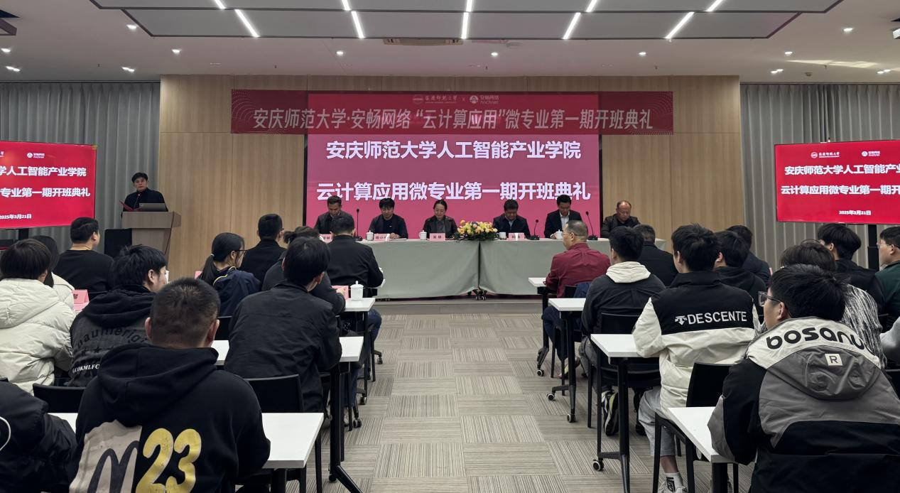3月21日,学校举行云计算应用微专业第一期开班典礼。校党委常委、副校长吴琼出席典礼。安庆市委组织部副部长、人才工作局局长阮波,安畅集团总裁程小中,安庆市人才发展集团党委书记、董事长王中群,教务处负责人,企业代表、教务处负责人、村花论坛
