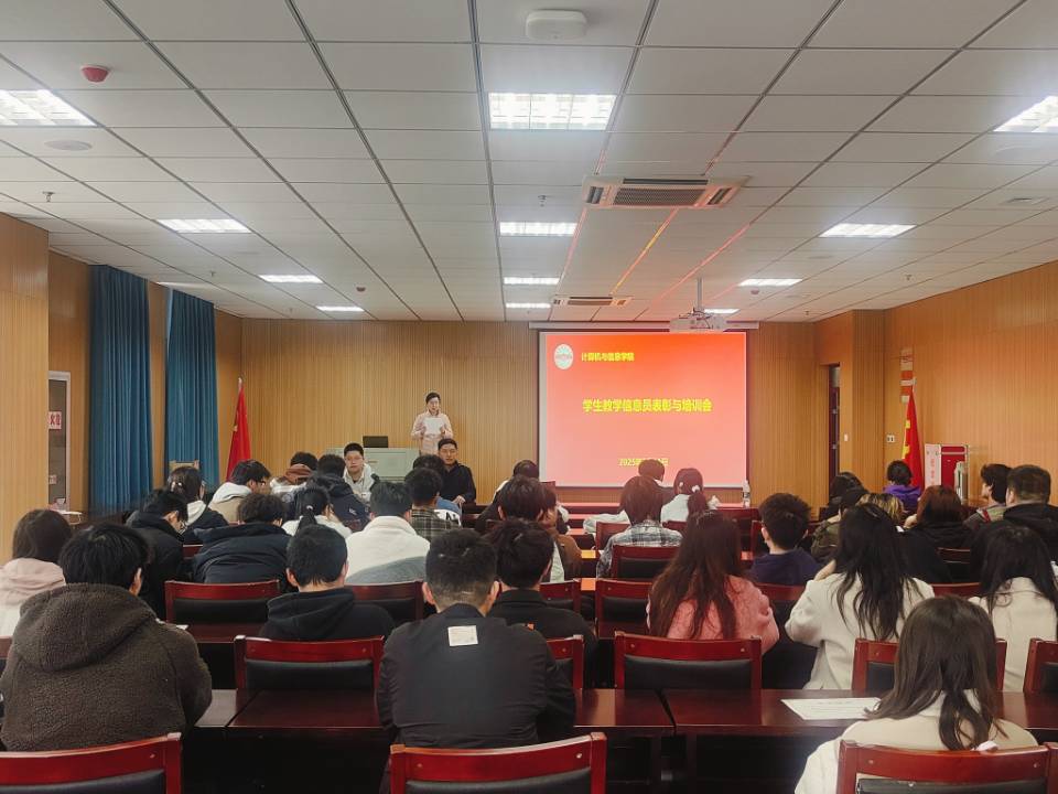 在计算机楼L302召开2023年度优秀教学信息员表彰暨培训会。副院长吴海峰、教务办公室全体老师及全体教学信息员参加了会议。
