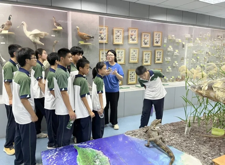 在生命科学学院标本馆,党员教师以 “党建红” 引领 “生态绿”,通过讲解珍稀动植物标本背后的保护故事,将 “绿水青山就是金山银山” 的发展理念融入科普教学。