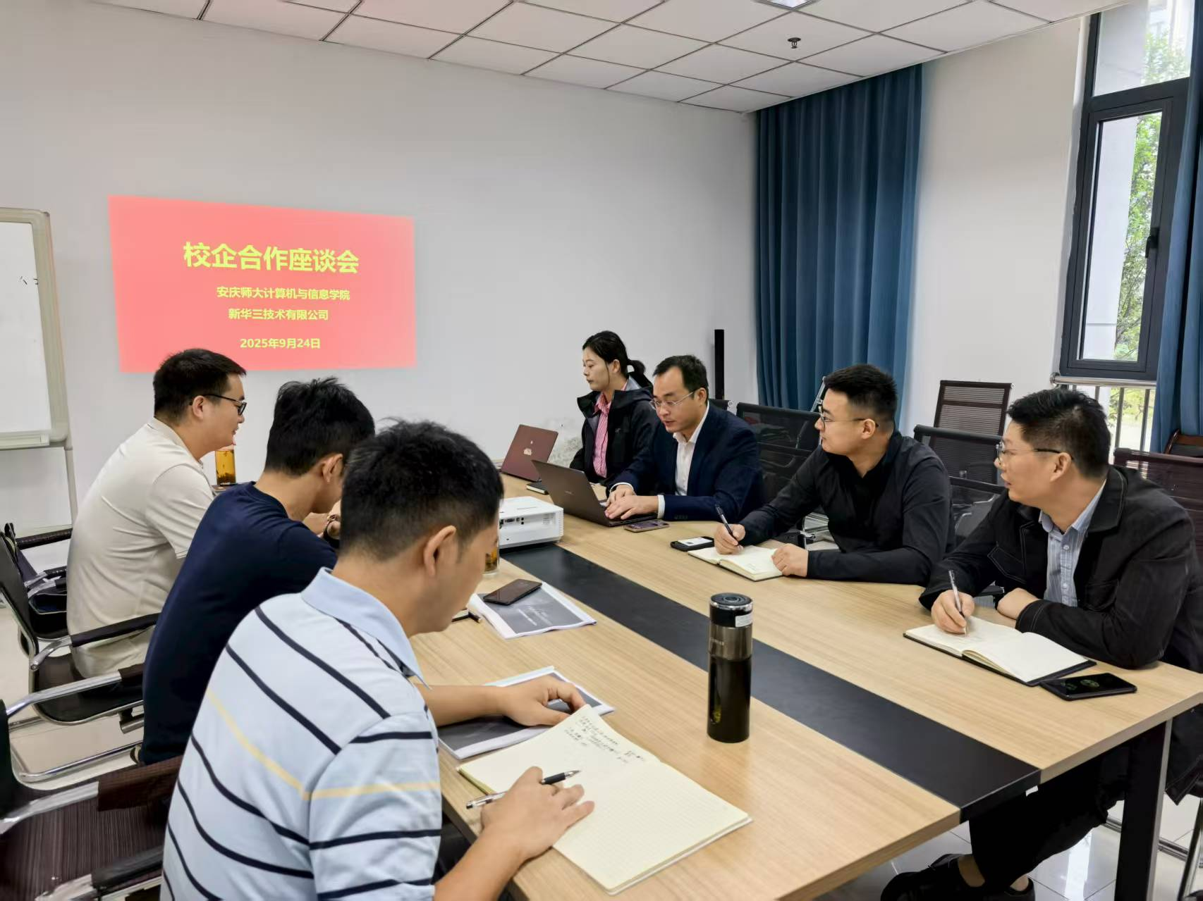 在L106会议室成功举办2025年度“双树双建”主题教育之 “创新发展,高校在行动”主题实践活动——校企合作交流座谈会。会议由院长王远志主持,副院长吴海峰、院长助理汪文明、学院博士教师代表以及新华三技术有限公司代表参加座谈会。
