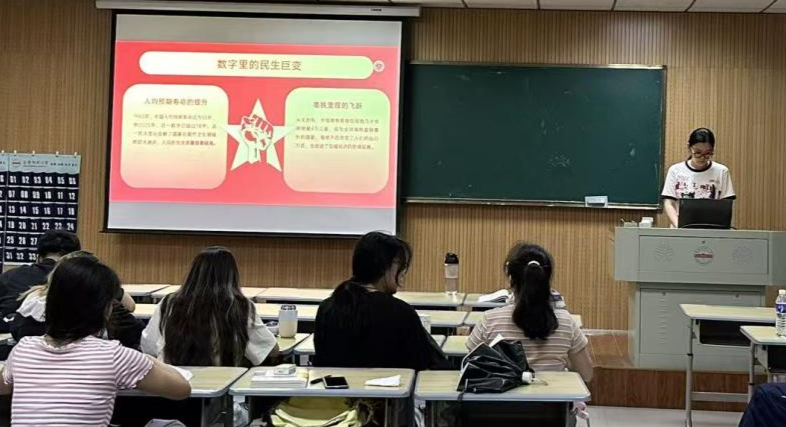 2024级多个团支部则聚焦“学党史、知国情、勇担当”,开展沉浸式主题学习会。各班级通过深入学习新中国成立以来的光辉历史、梳理76年以来的重大成就与时间轴,带领同学们回顾祖国从站起来、富起来到强起来的伟大飞跃。活动中,同学们踊跃交流:“从‘两弹一星’到‘嫦娥探月’,从脱贫攻坚到乡村振兴,祖国的每一步发展都离不开一代代人的拼搏!”“作为计算机专业学生,我们要学好专业知识,将来用专业技术为国家发展添砖加瓦!”热烈的交流中,大家不仅深化了对国情的认知,更明确了“强国一代”的使命与责任。