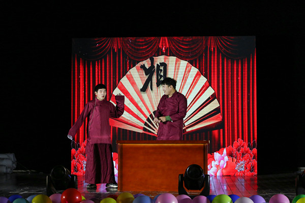 小品《上学那些事儿》、相声《吃货》指出了当前校园内大学生中出现的一些不良现象,形象鲜明的事例与诙谐幽默的语言表演完美结合,在给现场师生带来欢乐的同时也传达了“学习和健康”的重要性,引起现场学生陷入沉思。