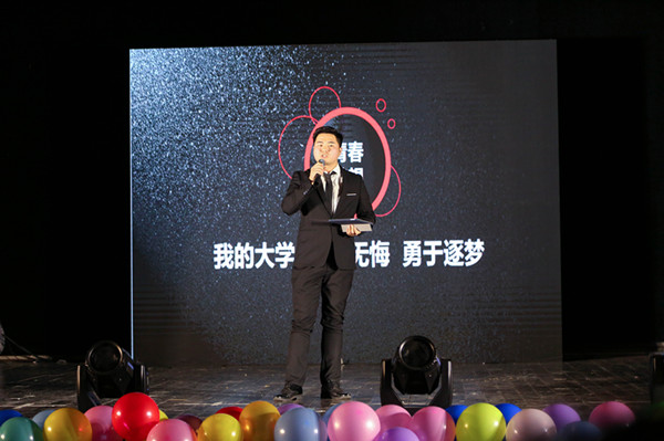 没有华丽的辞藻,却有着振奋人心的深请呐喊;没有动感的音乐旋律,却有对梦想的执着追求,由朱海军同学带来的脱口秀《我的大学 勇于追梦》将晚会氛围推向高潮,现场欢呼声不断。
