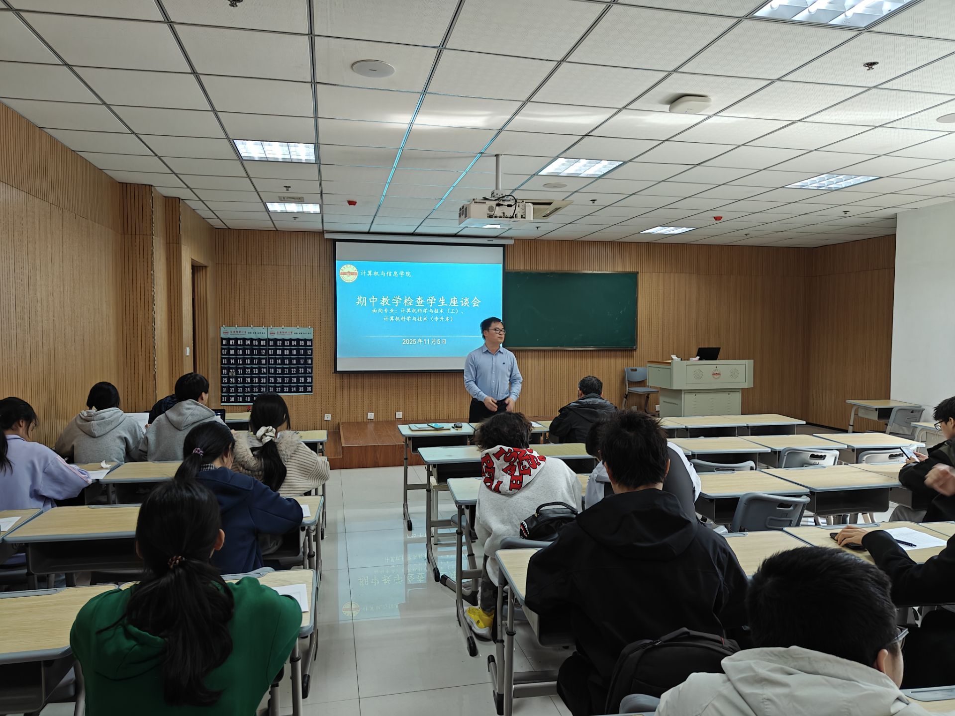 在L楼召开期中教学检查学生座谈会。此次座谈会设立5个分场,由学院领导带队,各专业负责人主持,来自各年级、各专业的140余名学生代表参加了会议。