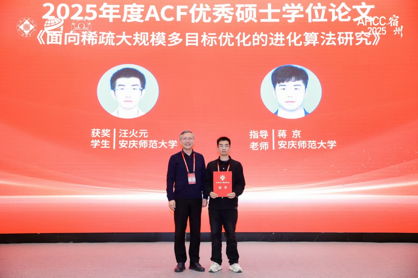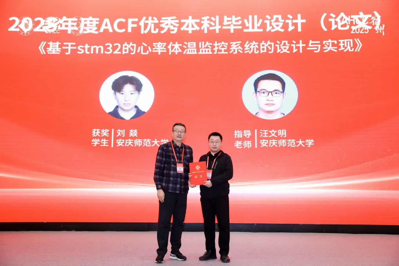 本届大会的优秀学位论文评选环节中,我院取得了喜人的成绩。蒋京副教授指导硕士生汪火元完成的《面向稀疏大规模多目标优化的进化算法研究》荣获“2025年度ACF优秀硕士学位论文”奖;汪文明副教授指导本科生刘燚完成的《基于STM32的心率体温监控系统的设计与实现》荣获“2025年度ACF优秀本科毕业设计(论文)”奖。上述荣誉充分体现了村花论坛