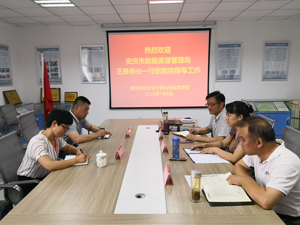 早日建成高水平大学、为大别山区域发展提供人才和智力支持的期望;是落实市委书记魏晓明关于进一步深化合作,实现资源共享,优势互补,合作共赢的要求。她表示要在学校深化改革的背景下,切实加强与数字资源管理局的合作,落实学院在人工智能和大数据技术等新兴学科、专业上的具体任务,为高水平大学建设与区域经济社会发展作贡献。王一宾院长重点介绍了该院近年来学科专业、教学科研、师资及人才培养等发展状况,并就下一阶段如何与安庆市数据资源管理局等市局部门在人才培养、专业共建、实习实训等方面开展实质性合作进行了具体沟通。