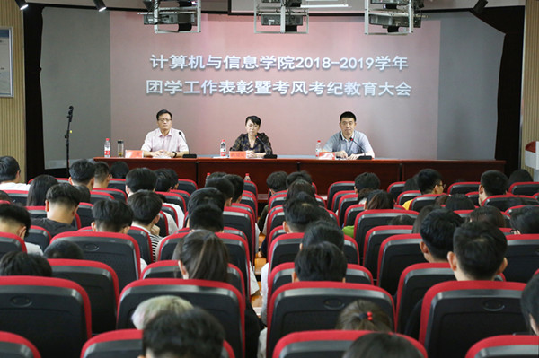 2018-2019学年团学工作表彰暨考风考纪教育大会在F411教室举办,学院党委书记陈银凤、党委副书记江伟、副院长刘奎、全体辅导员以及各学生干部代表参了大会,会议由江伟主持。