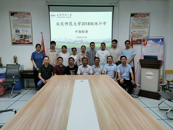 于6月20日下午,在稼先楼108室和215室举行2018级研究生中期考核汇报答辩会。因新冠肺炎疫情原因,答辩会分为线上和线下相结合的形式进行,全体2018级研究生参加中期考核汇报答辩。铜陵学院副校长苏本跃教授和学院部分硕士生导师组成的中期考核专家小组出席本次答辩会。