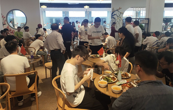 “味道很好,份量很足,是我在食堂吃过味道最好套餐最豪华的一次。”2018级物联网工程二班鲁同学对这次聚餐的菜品赞不绝口,“从来没有想过学院会以这样的形式陪我们过节,很感动,感觉到了学院对我们的关心与照顾,也感觉到了学院这个大家庭的对我们的爱,感谢学院能安排这次活动。”