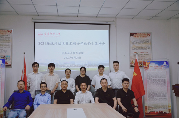 5月28日,学院在稼先楼南108室和215室,分组举行了2021届统计学硕士研究生学位论文答辩会。学院特邀请同济大学李光耀教授和西南石油大学闵帆教授担任两组答辩委员会主席,江苏大学韩飞教授和铜陵学院苏本跃教授及我院部分教授组成答辩委员会。2021届统计学11名硕士研究生参与答辩,其它年级30余名硕士研究生到场观摩学习。