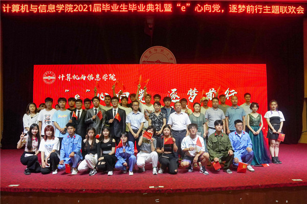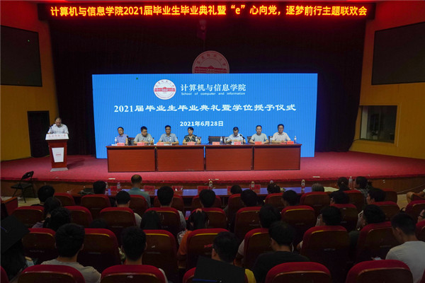 2021届毕业生毕业典礼暨“e”心向党,逐梦前行主题联欢晚会在图书馆东厅举行。学院全体领导、教师代表、毕业班辅导员和毕业生等400余人参加典礼,典礼由党委副书记江晋剑主持。
