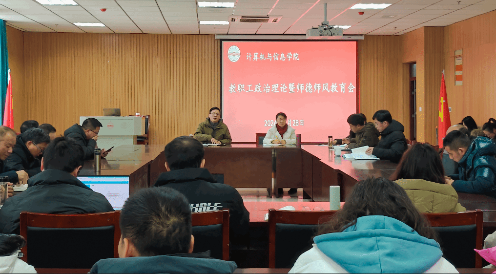 2月28日,学院在L楼302召开全体教职工大会,进行政治理论学习和师德师风教育,传达学校开学工作会议精神。学院全体教职工参加会议,党委书记陈银凤主持会议。