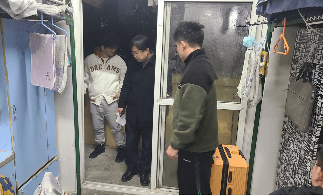 检查前,学院召开学工委扩大会议,再次学习传达近期校安全稳定工作会议及学生工作会议精神,布置了安全卫生检查任务。检查过程中,辅导员和学生干部仔细地检查了每一间宿舍,认真登记了排查中所发现的安全隐患和卫生问题,对垃圾堆积在阳台未能及时清理等现象作出整改提醒,同学们积极配合、迅速调整,检查工作有序进行。针对毕业班在校学生较少、外出找实习工作流动性较大等情况,辅导员们提醒学生在注意外出交通安全的同时,也要注意寝室卫生安全,确保每一间宿舍安全整洁。