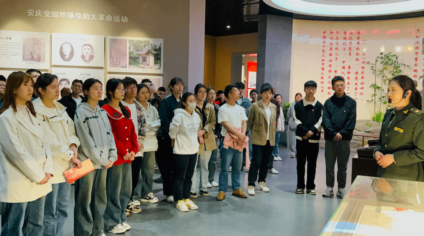 在安庆市烈士陵园,师生党员们在革命烈士纪念碑前整齐列队,在讲解员的主持下,唱国歌、重温入党誓词、敬献鲜花、肃立默哀,以表达对革命先烈的崇高敬意和深切的缅怀之情。悼念仪式结束后,在讲解员带领下,有序参观烈士纪念馆。馆内的图书报纸、音视频等资料,记载着那段不平凡的岁月,诉说着革命先烈的英勇事迹。陈银凤在活动中强调,今天的幸福生活来之不易,是无数革命先烈英勇奋斗争取来的,同志们要不忘初心,砥砺革命意志,接续担当奋斗。