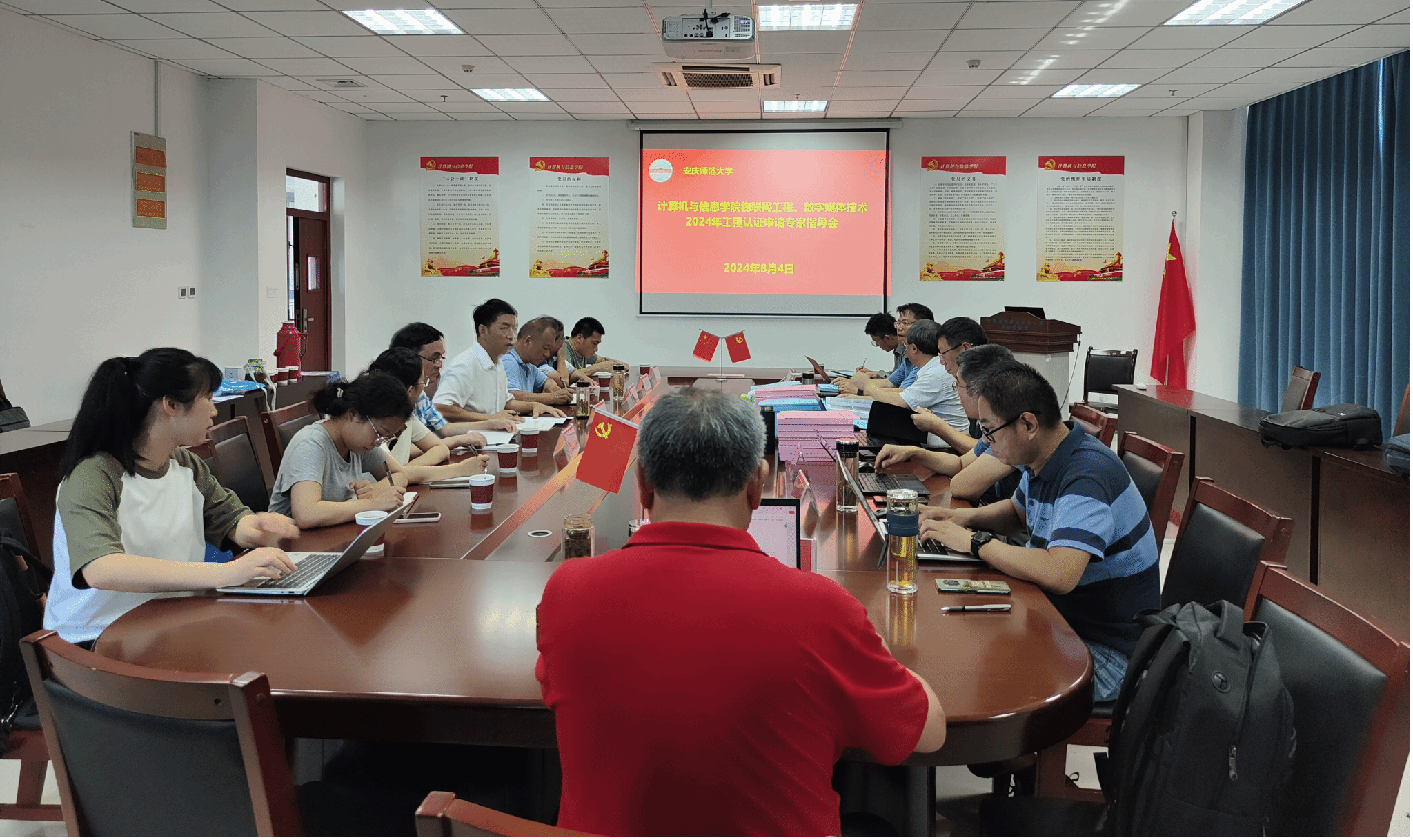 副院长吴海峰主持。此次会议邀请合肥工业大学教授胡学钢、合肥工业大学教授王浩、安徽师范大学教授许勇、合肥大学人工智能与大数据学院副院长许强、合肥工业大学副教授杨兴明、安徽建筑大学副教授孙光灵等6人组成专家团队,为学院数字媒体技术和物联网工程两个专业的工程认证申请工作进行指导。