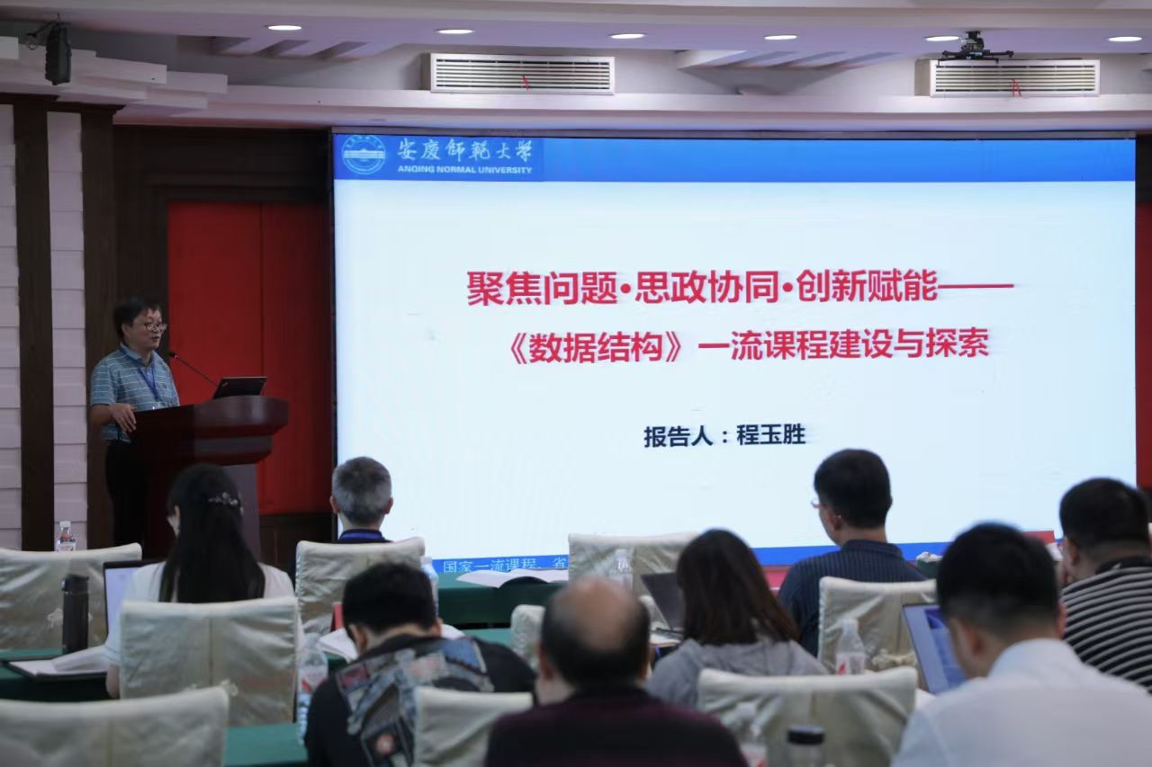 教授程玉胜分别作题为《专业课程教师的工程能力培养》《严格控制课程教学质量,保证课程目标有效达成》《聚焦问题·思政协同·创新赋能——〈数据结构〉一流课程建设与探索》报告。