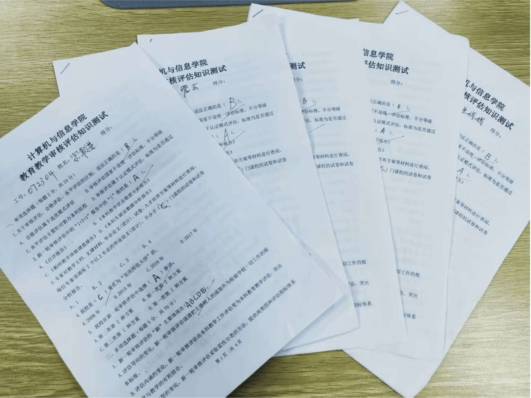在L302会议室面向全体教职工集中开展知识测试活动。此次测试内容涵盖了教育教学审核评估的基本理念、评估标准、评估流程等方面,旨在加强教职工对本科教育教学审核评估的理解和认识,提升教育教学质量,确保学院审核评估工作的顺利开展。