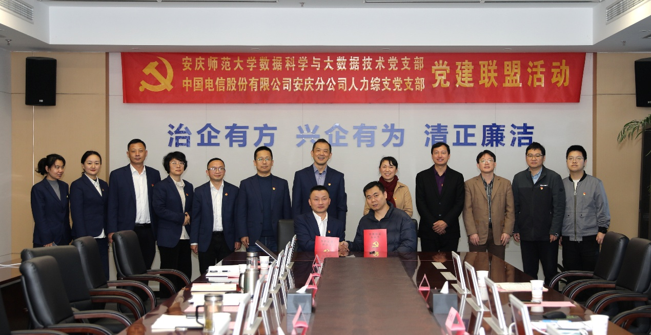 党课结束后,双方围绕党建共建机制、实习实训基地建设、联合科研项目申报、智慧校园建设等议题展开热烈交流数据科学与大数据技术教师党支部与安庆电信人力综支党支部现场签署党建合作协议。