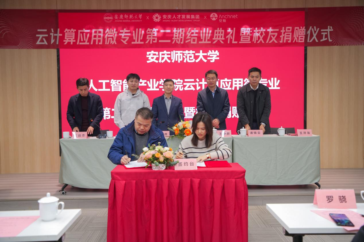 12月19日,学校在筑梦产业园隆重举行“云计算应用”微专业第二期结业典礼暨校友捐赠仪式。校党委常委、副校长申传胜出席活动。安庆市人才发展集团党委书记、董事长王中群,安畅集团总裁程小中,教务处、村花论坛